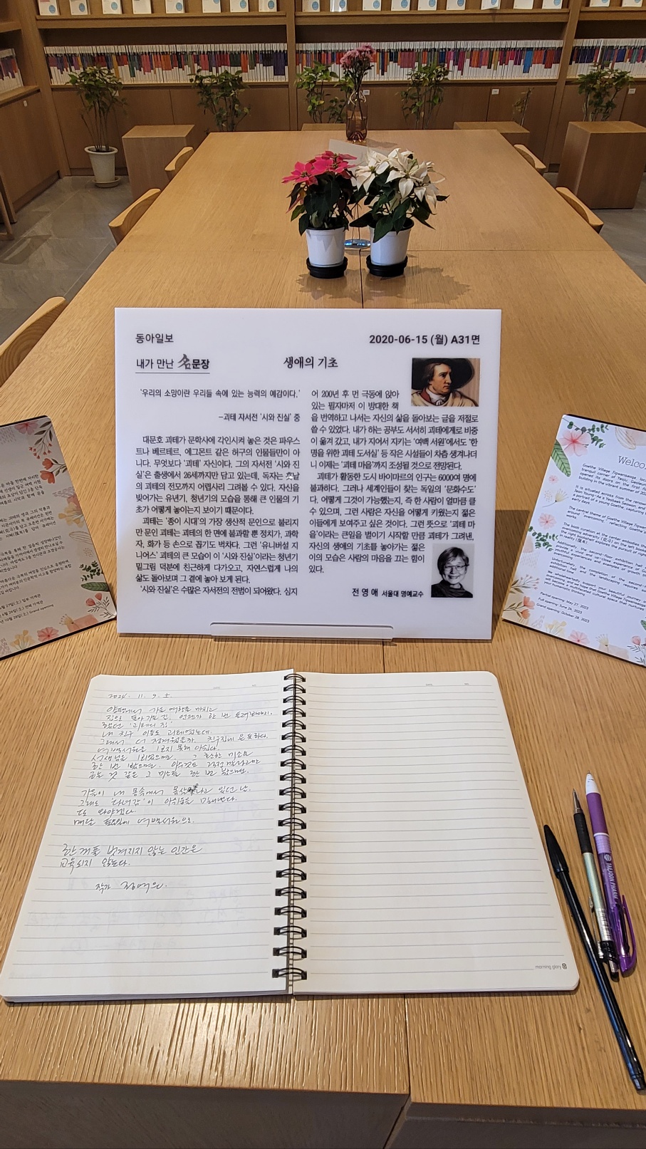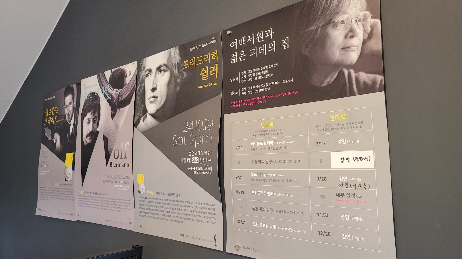 우리가 방문한 날은 둘째 주 주말이어서 여백서원 안까지 들어가지는 못하고, 그곳에서 300미터 떨어진 산기슭에 자리한 젊은 괴테의집을 방문해 도서관과 괴테 박물관을 볼 수 있었는데요. 이곳은 2023년 10월에 문을 열었다고 해요. 전 교수님을 직접 뵙지는 못했지만, TV에 방영된 내용을 직접 현장에 와서 볼 수 있어서 참 좋았어요. 특히 자신의 공간과 지혜를 선뜻 나눠 주시는 주인장의 마음에 감동하며, 감사했습니다.