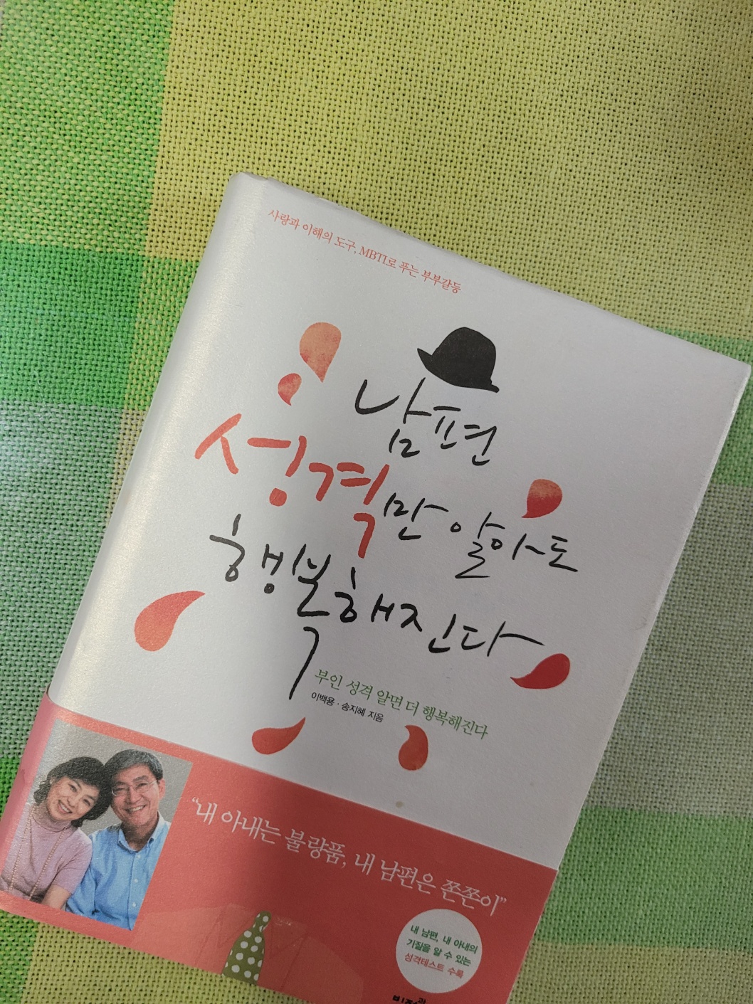 이 책은 MBTI를 통해 서로의 성격과 기질을 이해하고, 제2의 인생을 시작한 어느 부부의 이야기인데요. 꼼꼼하고 질서정연한 것을 좋아하는 판단형 남편 이백용 씨는 태평양을 넘나드는 세기의 구애 끝에 생기발랄한 아내와 결혼했지만, 충동적이고 덤벙대는 아내 때문에 매사에 충돌하며 힘들었습니다. 더 중요한 일에 따라 그때그때 우선순위가 뒤바뀌는 인식형 아내 송지혜 씨는 매사 계획대로 되어야 뿌듯해하는 남편 때문에 주눅이 들었습니다.