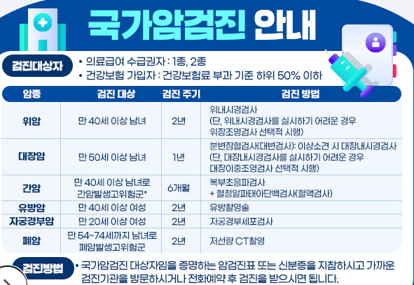 | 구 분 | 검 사 항 목 | 비용(의료 수급권자 무료) |