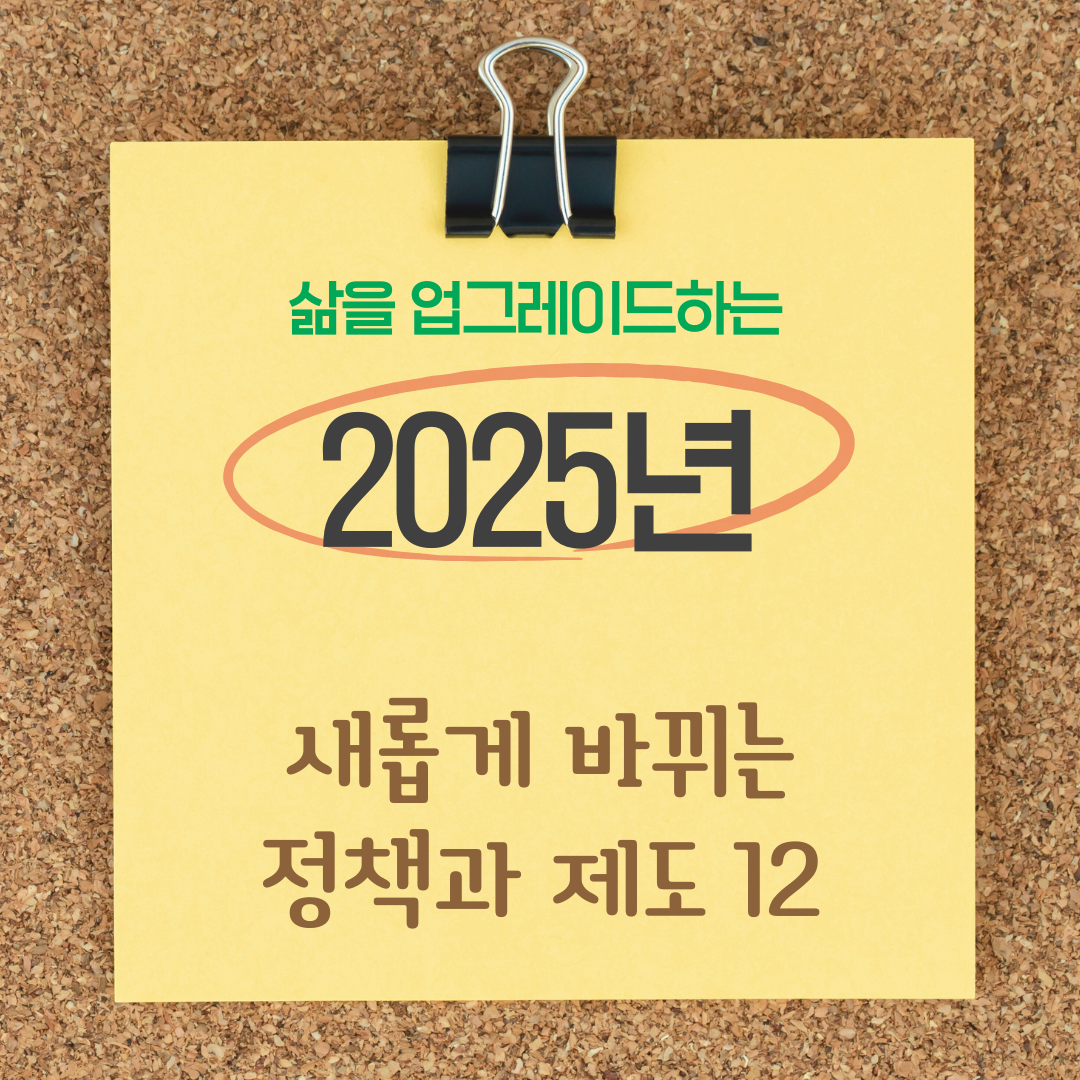 새해가 밝았습니다. 2025년에는 우리 사회 여러 분야의 제도와 정책들이 변경, 시행될 예정인데요. 새해부터 새롭게 시행되는 복지 제도와 정책 변화 중에 우리 삶에 도움이 되는 내용 12가지를 알려드립니다. 새해 복 많이 받으세요.