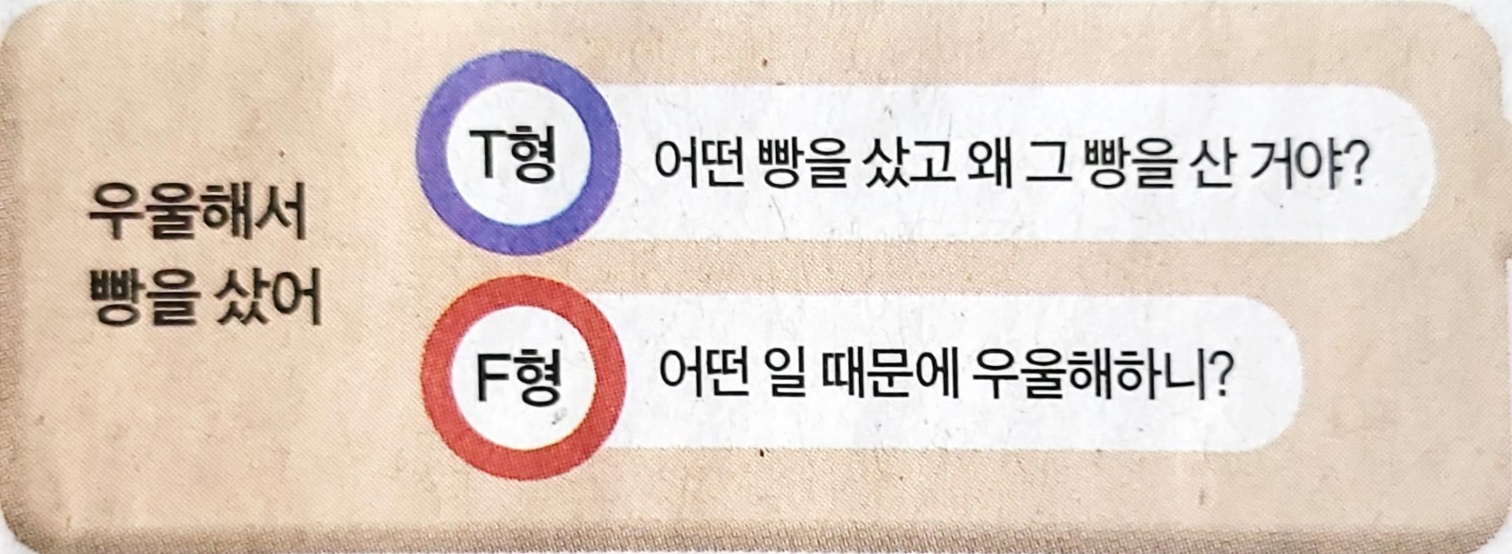 소셜미디어(SNS)에선 T·F형을 구별하는 “우울해서 빵 샀어” 등 문장으로 반응을 묻는 놀이도 유행했다. 어떤 빵을 샀는지, 왜 하필 빵을 샀는지 등을 물으면 T형, 왜 우울했는지부터 물으면 F형으로 구분하는 식이다. “너 T지”, “F 호소인” 등의 말은 T유형을 비판하는 하나의 밈(meme)이 됐다. [출처: 2024년 6월 25일, 중앙일보]