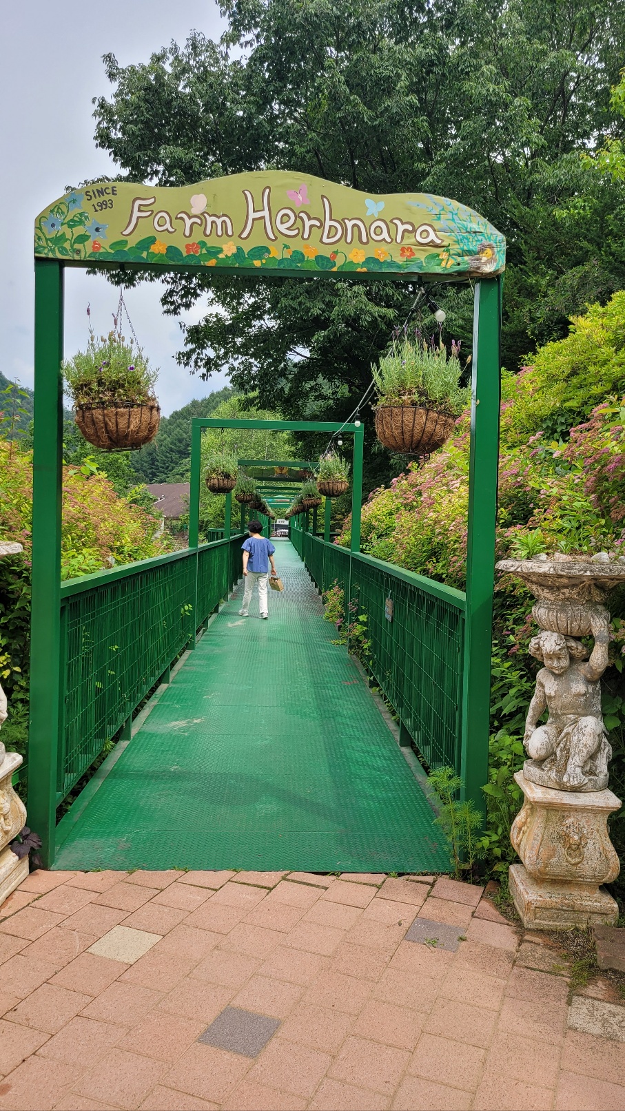 허브나라농원 매표소에서 농원으로 들어가는 길은 계곡 위로 난 녹색 철제 다리와 연결되어 있는데 그 다리를 건너면 초입에 포시즌 가든이 나옵니다. 허브 향이 은은하게 퍼지는 테마별 정원에 들어서면 곳곳에 아기자기한 조형물과 좋은 글, 허브가 어우러져 마치 동화 마을에 온 듯한 느낌이 듭니다. 계절 따라 싱그러운 허브가 정원에 가득하고 꽃이 피는데, 봄을 상징하는 봄꽃에 허브 꽃이 많아 봄에 오면 꽃을 더 많이 볼 수 있겠지요.