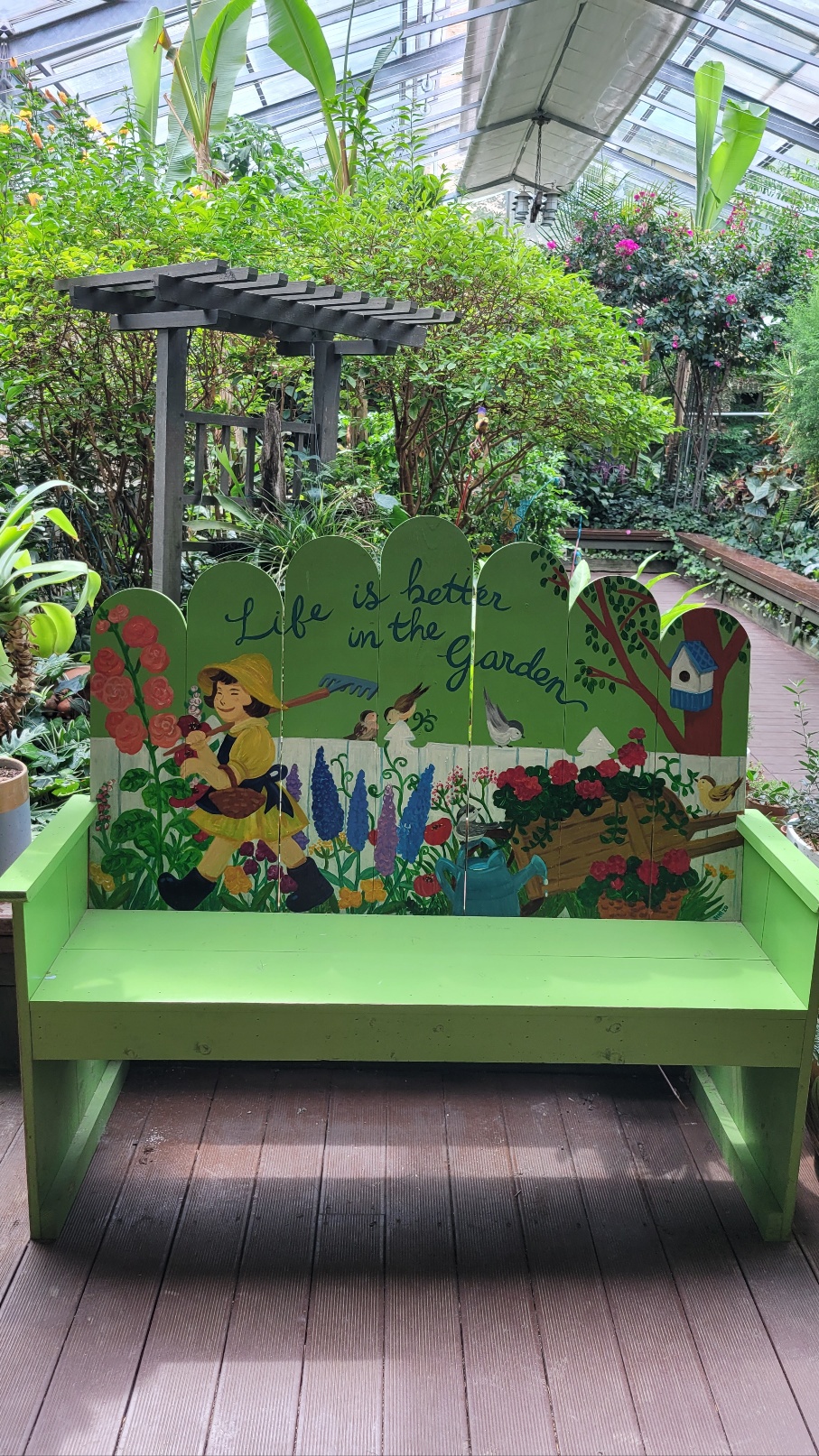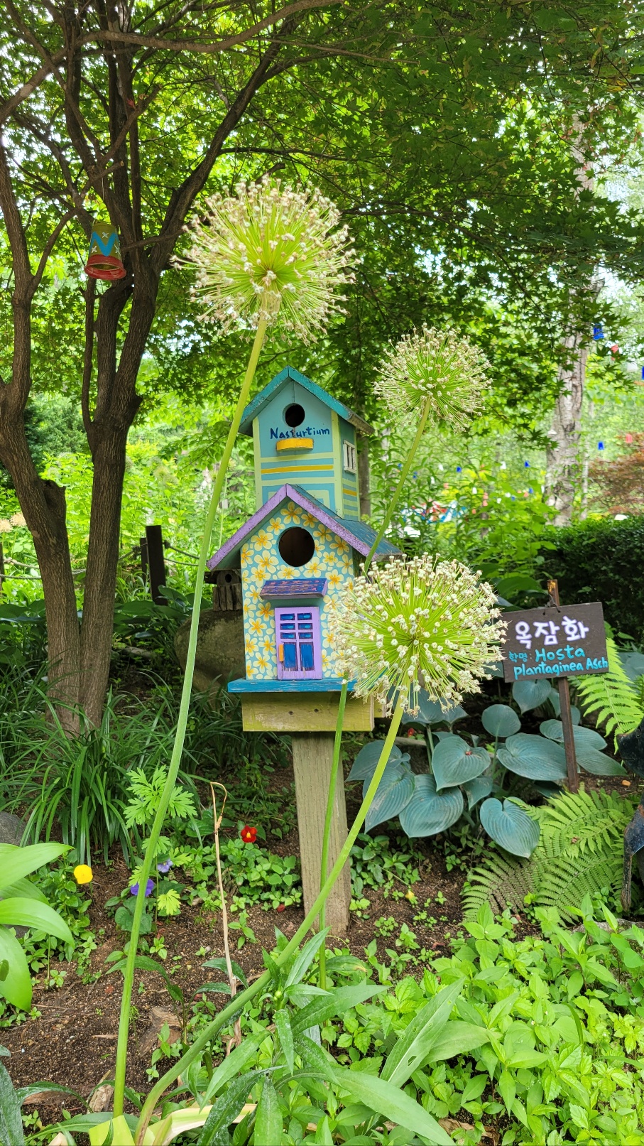허브나라농원 매표소에서 농원으로 들어가는 길은 계곡 위로 난 녹색 철제 다리와 연결되어 있는데 그 다리를 건너면 초입에 포시즌 가든이 나옵니다. 허브 향이 은은하게 퍼지는 테마별 정원에 들어서면 곳곳에 아기자기한 조형물과 좋은 글, 허브가 어우러져 마치 동화 마을에 온 듯한 느낌이 듭니다. 계절 따라 싱그러운 허브가 정원에 가득하고 꽃이 피는데, 봄을 상징하는 봄꽃에 허브 꽃이 많아 봄에 오면 꽃을 더 많이 볼 수 있겠지요.