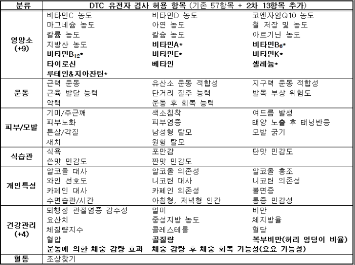 ✅ [2020.11월 보건복지부 / DTC 유전자 검사 추가 허용 항목]