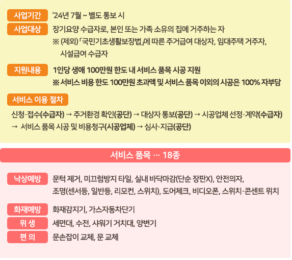 ✅ 지원 내용: 1인당 생애 100만원 한도 내 서비스 품목 시공 지원