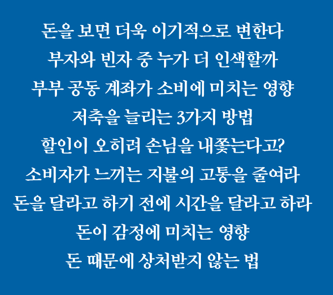이 책은 단순히 돈을 많이 벌거나 아끼는 방법을 이야기하는 것이 아니라, 돈이 인간의 심리에 어떻게 작용하는지를 다양한 실험과 사례를 통해 탐구한다. 돈이 우리의 생각과 행동을 어떻게 조종하는지, 그리고 이를 바탕으로 어떻게 더 나은 결정을 내릴 수 있는지를 깨닫게 해주는 책이다.