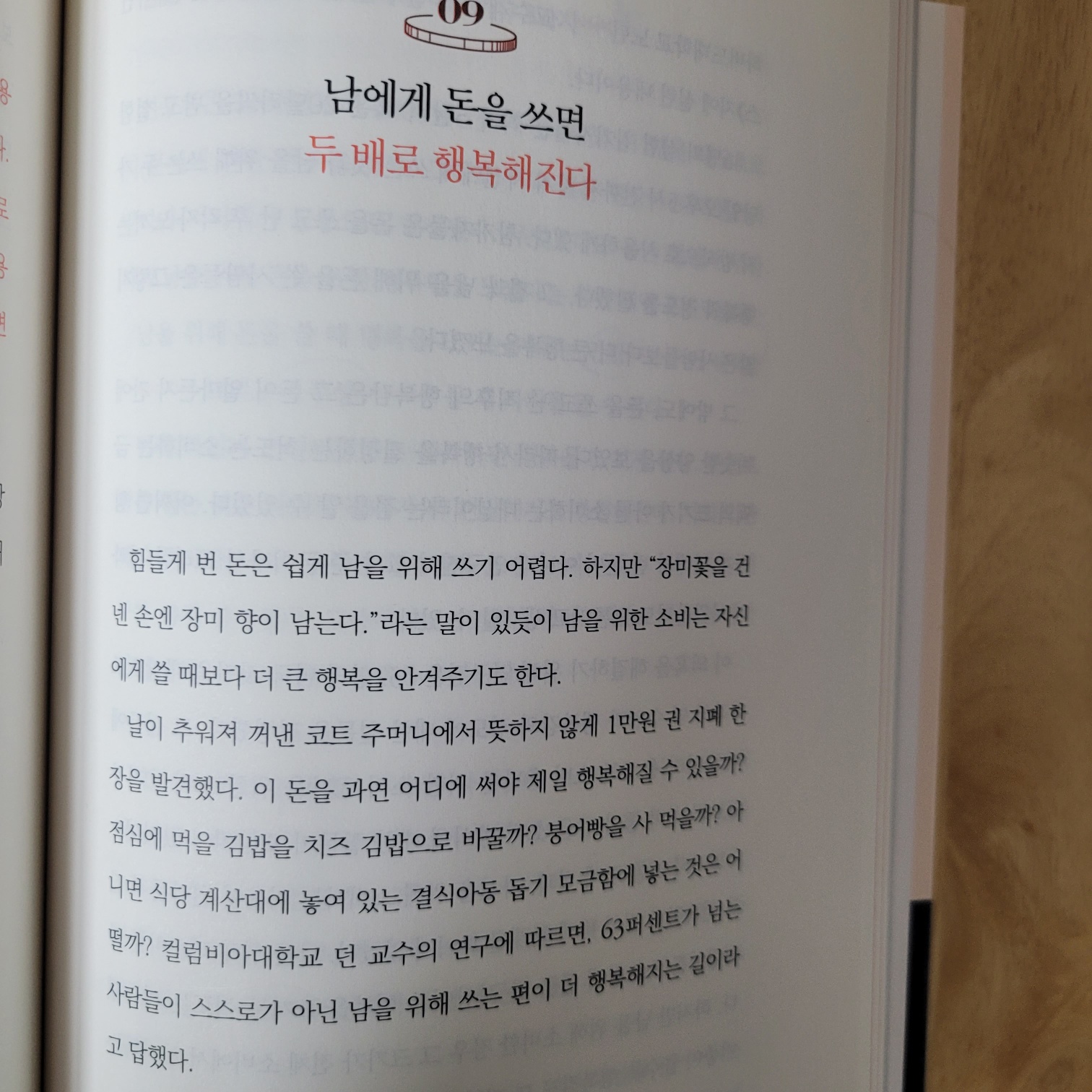 우리는 돈이 많으면 행복할 것이라 생각하지만, 과연 그럴까? 이 책은 돈과 행복에 대한 여러 연구를 소개하며 우리의 통념을 깨트린다. 예를 들어, 돈이 많아질수록 행복지수가 올라가는 것은 일정 수준까지만 해당된다. 연구에 따르면, 기본적인 생활이 가능할 정도로 충분한 돈을 가지는 것은 행복에 기여하지만, 그 이상이 되면 돈이 행복을 보장해 주지는 않는다. 오히려 지나치게 돈을 의식하면 불안과 스트레스가 증가할 수도 있다.