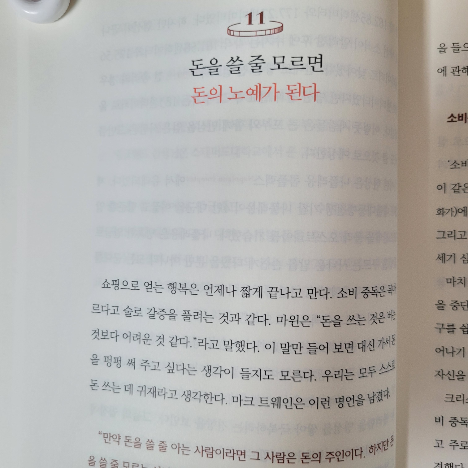 이 책을 읽고 나면 돈을 바라보는 시각이 달라질 것이다. 돈을 단순한 수단이 아니라, 우리의 삶을 조정하는 중요한 요소로 인식하게 된다. 또한, 돈을 보다 건강하게 관리하고 쓸 수 있는 실질적인 방법을 배우게 된다. 돈에 대한 올바른 태도를 갖추고 싶은 사람이라면 읽어보기를 추천한다.