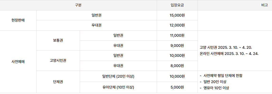 ※ 단, 고양시민 예매권, 얼리버드 입장권 등 할인권은 제외.