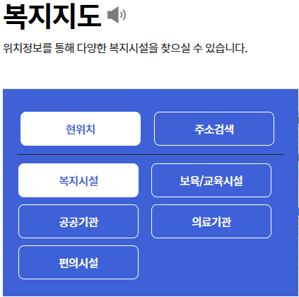 ✔ 전국의 복지 시설 및 기관 위치 조회 가능