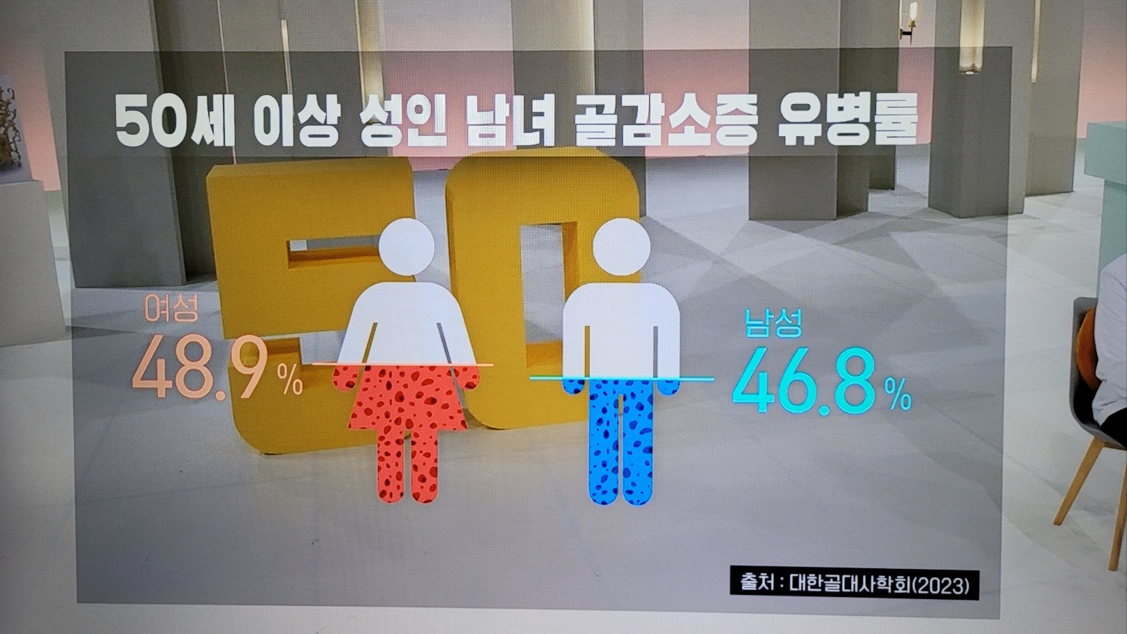 뼛속에 구멍이 생기는 골다공증은 심해지면 일상생활 중에도 뼈가 쉽게 부러질 수가 있다.