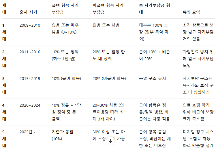 🔰 실손보험 세대별 자기부담금 변화 비교표