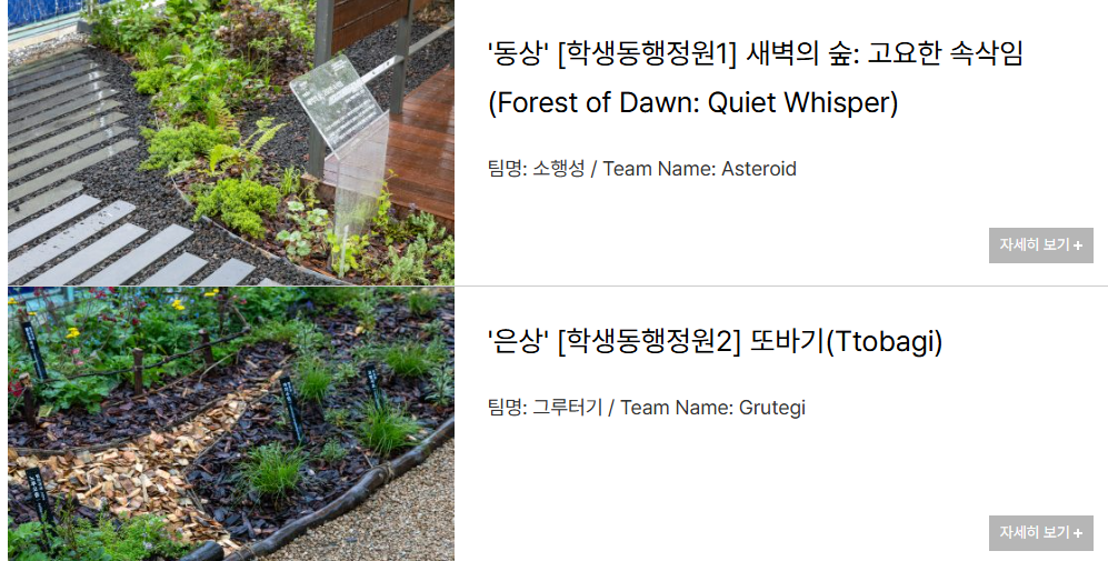 정원문화 확산과 관련 학과 학생들의 창의적인 디자인 발굴을 위하여 2025 서울국제정원박람회 학생동행정원 작품공모를 추진하였으며, 총 10작품이 선정되어 보라매공원에 조성됩니다.