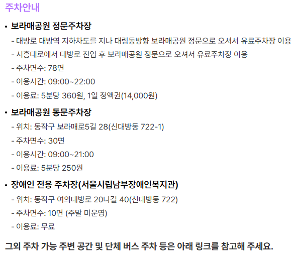 장소: 서울 보라매공원 (서울특별시 동작구 여의대방로 20길 33)