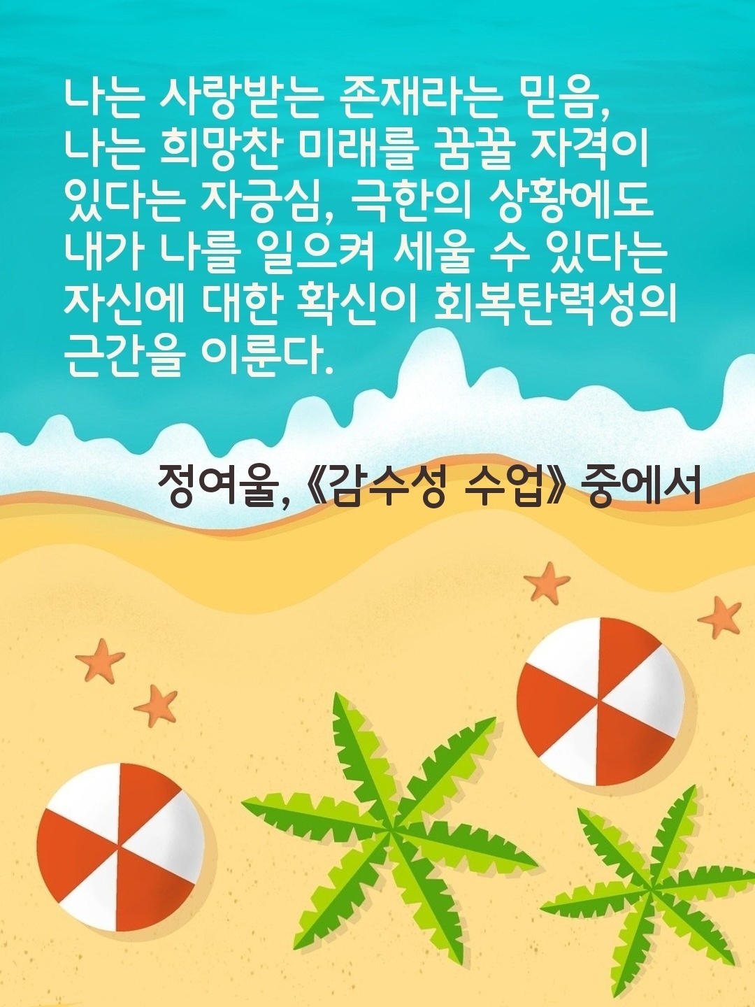 현대인들은 끊임없이 쏟아지는 정보의 홍수 속에서 정작 자신의 감정을 읽어내는 능력을 잃어가고 있다. 스마트폰 알림음에 반응하듯 외부 자극에만 민감해진 우리에게, 정여울 작가의 《감수성 수업》은 잃어버린 내면의 목소리를 되찾을 수 있는 귀중한 길잡이가 되어 준다. 좋은 책은 생각할 거리가 많아 쉽게 읽히지 않는다던가? 《감수성 수업》역시 그랬다.  이 책은 7월 독서모임에서 함께 읽고 나눈 책이다. 각자 읽고 난 소감을 나누는 자리에서 호평이 쏟아졌다.