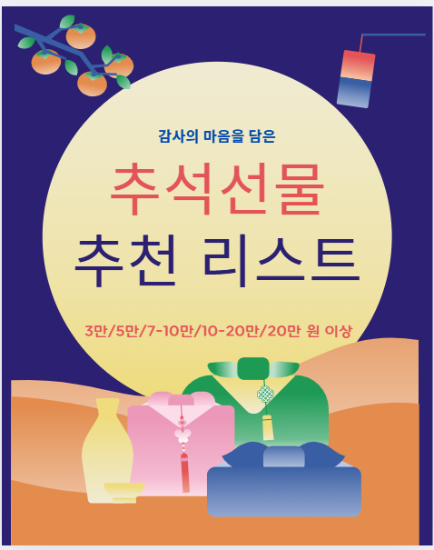 추석 연휴가 일주일 앞으로 다가왔어요. 추석선물은 준비하셨나요? 추석선물 선택, 매년 고민되시지요? 올해는 예산과 상대의 취향을 동시에 반영해 '후회 없는 선물'을 준비해 보세요. 실용성과 예산을 함께 고려한 가격대별 추석선물 추천을 통해 적절한 선택을 할 수 있도록 정리해 드릴게요. 받는 이의 상황, 포장과 메시지까지 포함해 현실적으로 활용 가능한 팁을 담았습니다.
