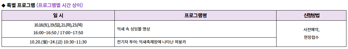 ✅ 체험 프로그램, 특별프로그램