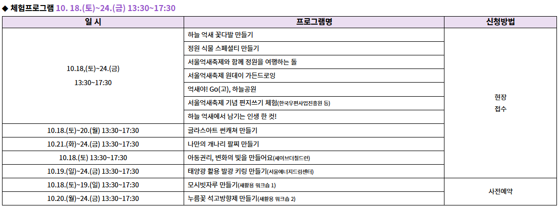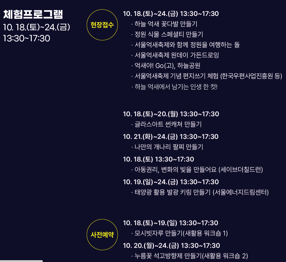 ※10.18. 개막식으로 인해 15:00~17:00 운영
