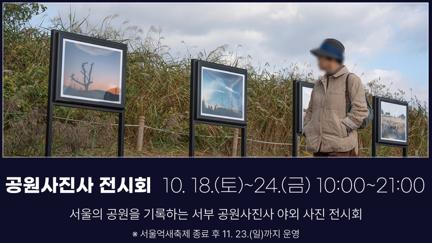 ◆ 공원사진사 전시회 10. 18.(토)~24.(금) 10:00~21:00 ※ 서울억새축제 종료 후 11. 23.(일)까지 운영
