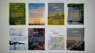 날마다 감사일기를 쓸 뿐 아니라 다른 분이 쓴 감사일기에 따뜻한 댓글을 달아 힘을 실어준 분에게는 ‘마음 보듬이 상’을, 어려운 상황에서도 감사나무를 돌보며 성실하게 쓴 분에게는 ‘감사나무 지킴이 상’을, 또 한 분에게는 ‘100일 감사일기 개근상’을 수여했다. 아울러 카톡방에 감사일기를 자주 공유하고 다른 분들이 올린 감사일기에 격려와 칭찬으로 좋은 동기를 부여한 여섯 분에게는 ‘감사장’을 주었다. 그리고 그 후에도 감사일기를 지속적으로 쓰기 위해 요일별로 당직을 한 명씩 정해 감사나무를 지키며 댓글을 쓰기로 약속했다. 이와 함께 100일간 감사일기를 쓰고 난 소감을 몇 분에게 들어보았다.
