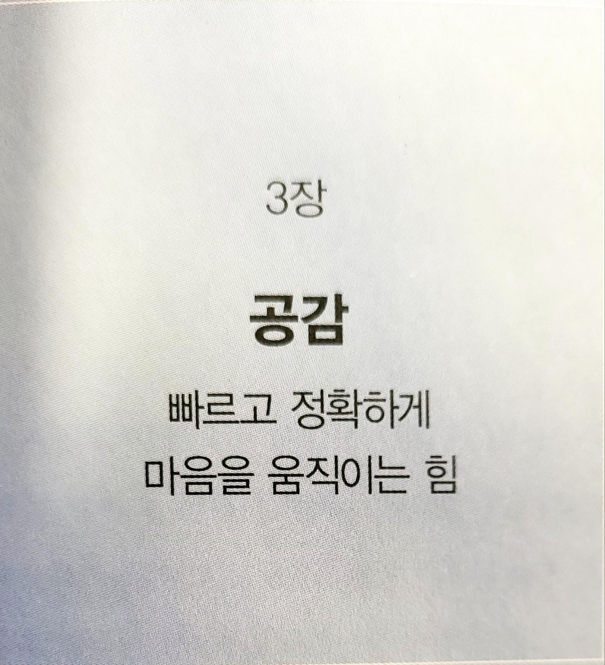 저자는 그 ‘한 사람’이 되기 위한 실질적인 방법을 공감의 과녁, 경계 짓기, 공감의 허들 넘기로 설명한다. 고개를 끄덕이며 상대에게 무조건 긍정하는 것, 상대를 위한답시고 ‘충조평판(충고, 조언, 평가, 판단)’하는 것이 공감이라는 착각과 통념을 깨며, 정확하게 도움이 되는 공감이 향해야 할 6가지 과녁을 설명한다. 다음은 빠르고 정확하게 마음을 움직이는 공감의 과녁이다.