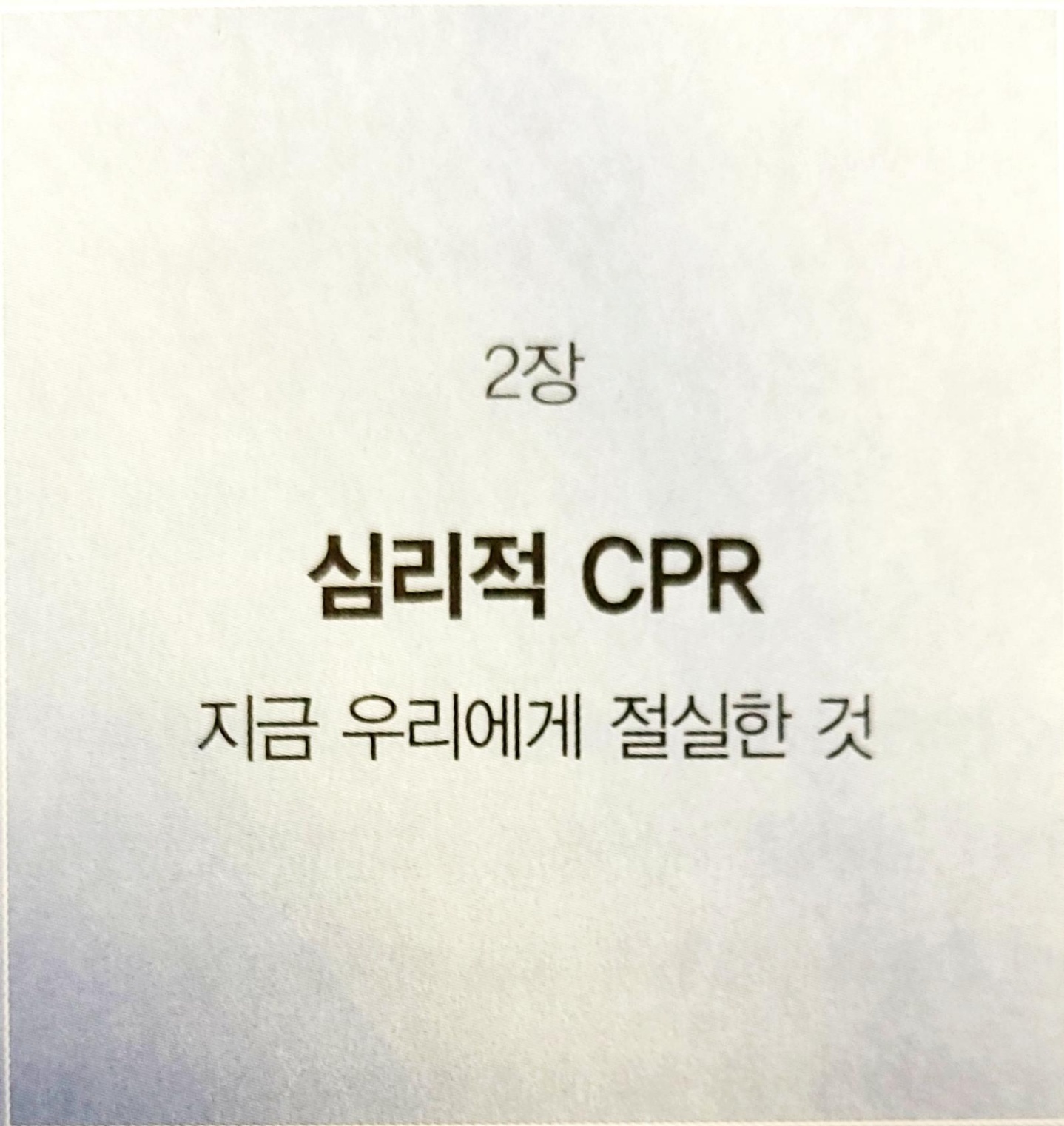 외형적 조건이나 삶의 내력이 아닌 사람의 존재 자체에 집중하고, ‘감정’을 묻는 질문과 지지를 통해 존재의 핵심으로 들어가는 심리적 CPR은 공감의 다른 이름이기도 하다. 이러한 공감을 통해 자신에 대한 진짜 이야기를 시작하면 누구라도 짓눌려 있던 ‘내’가 되살아나고 자신의 상황과 문제를 스스로 조망할 수 있는 힘과 호흡을 회복할 수 있다. 그래야 응급 상황에서 결정적인 순간에 사람을 살릴 수 있다는 것이다.