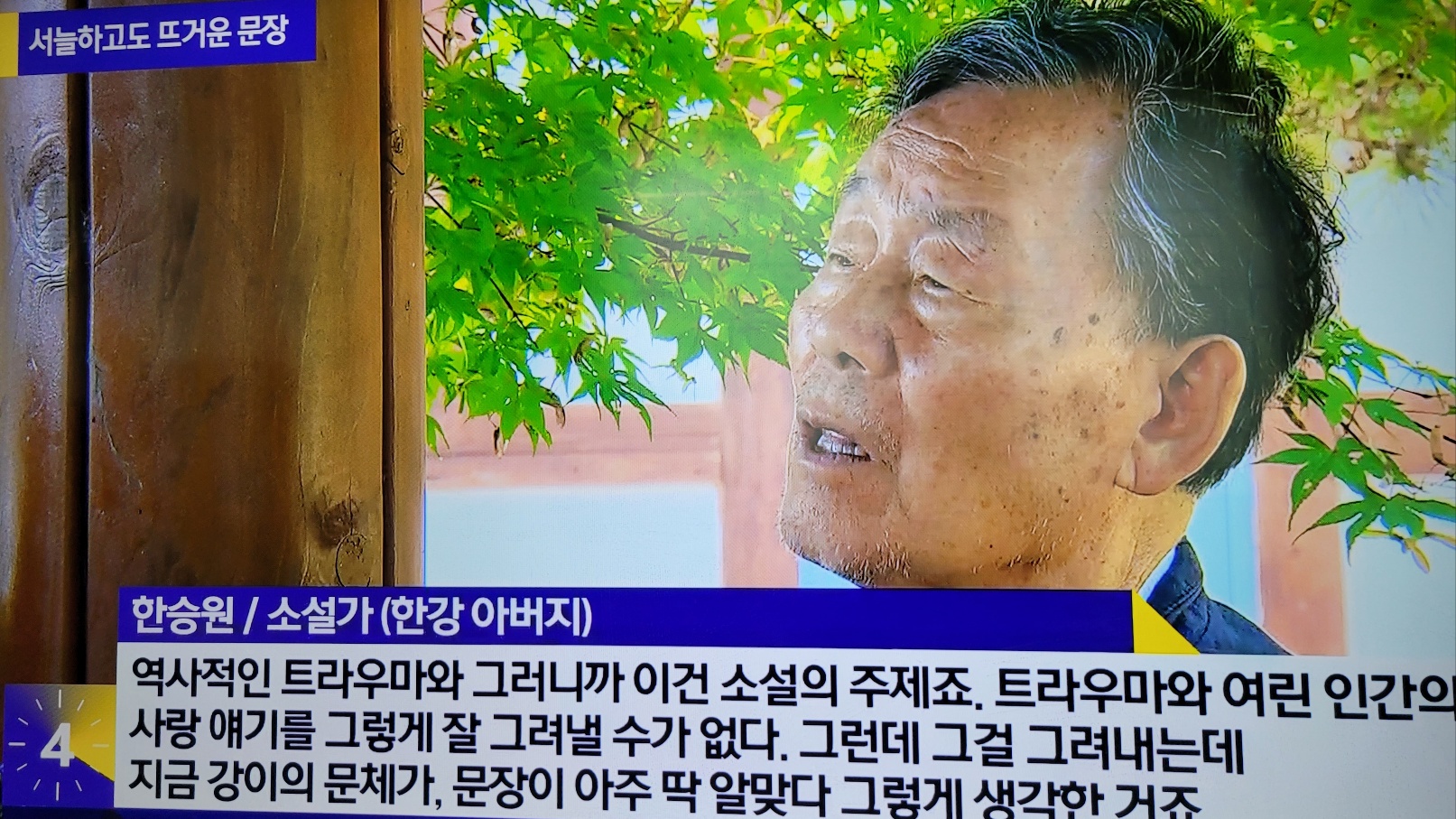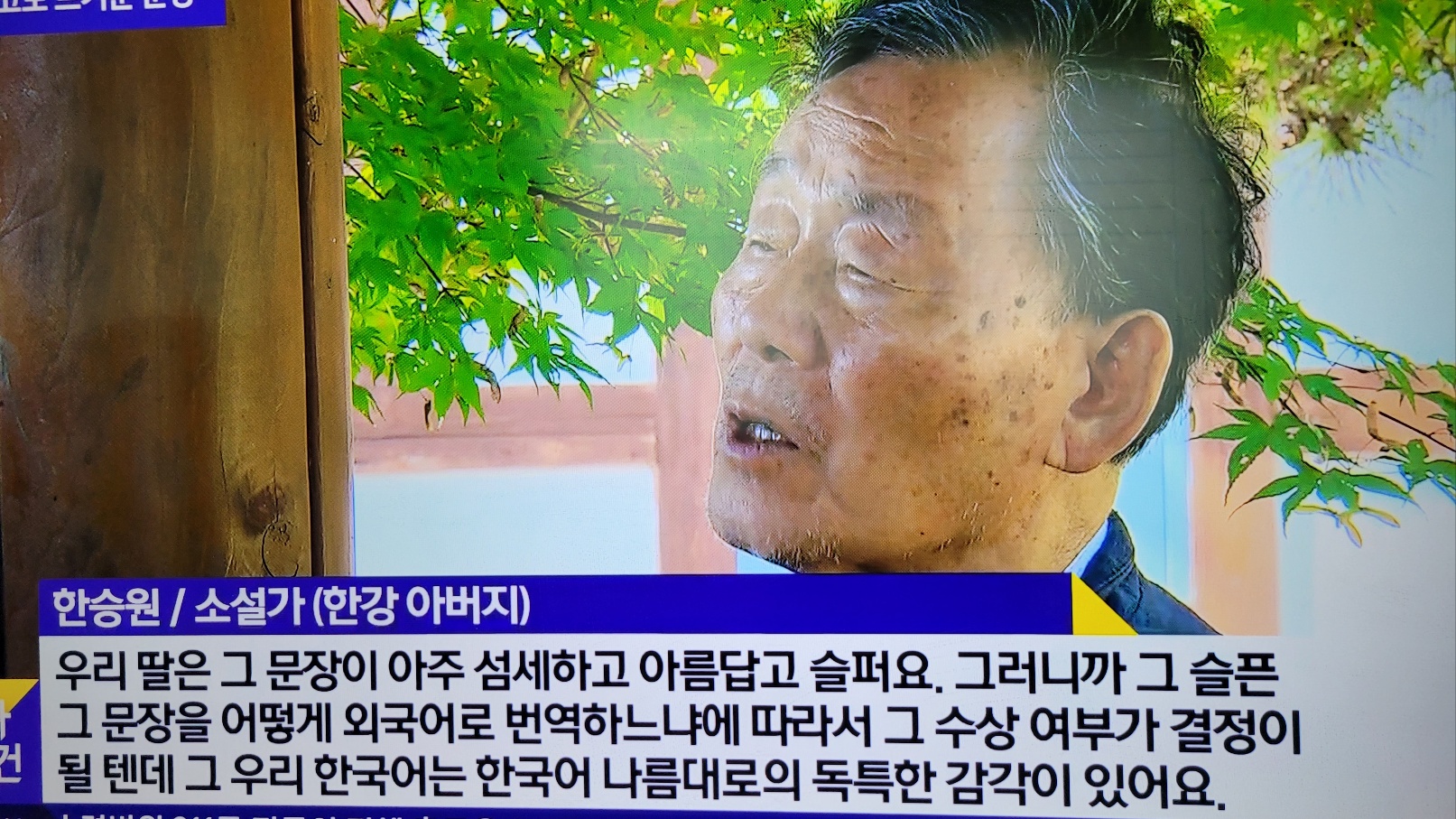 한국 노벨문학상 기념 앙코르 프로그램에서 인터뷰 중인 한승원 작가.