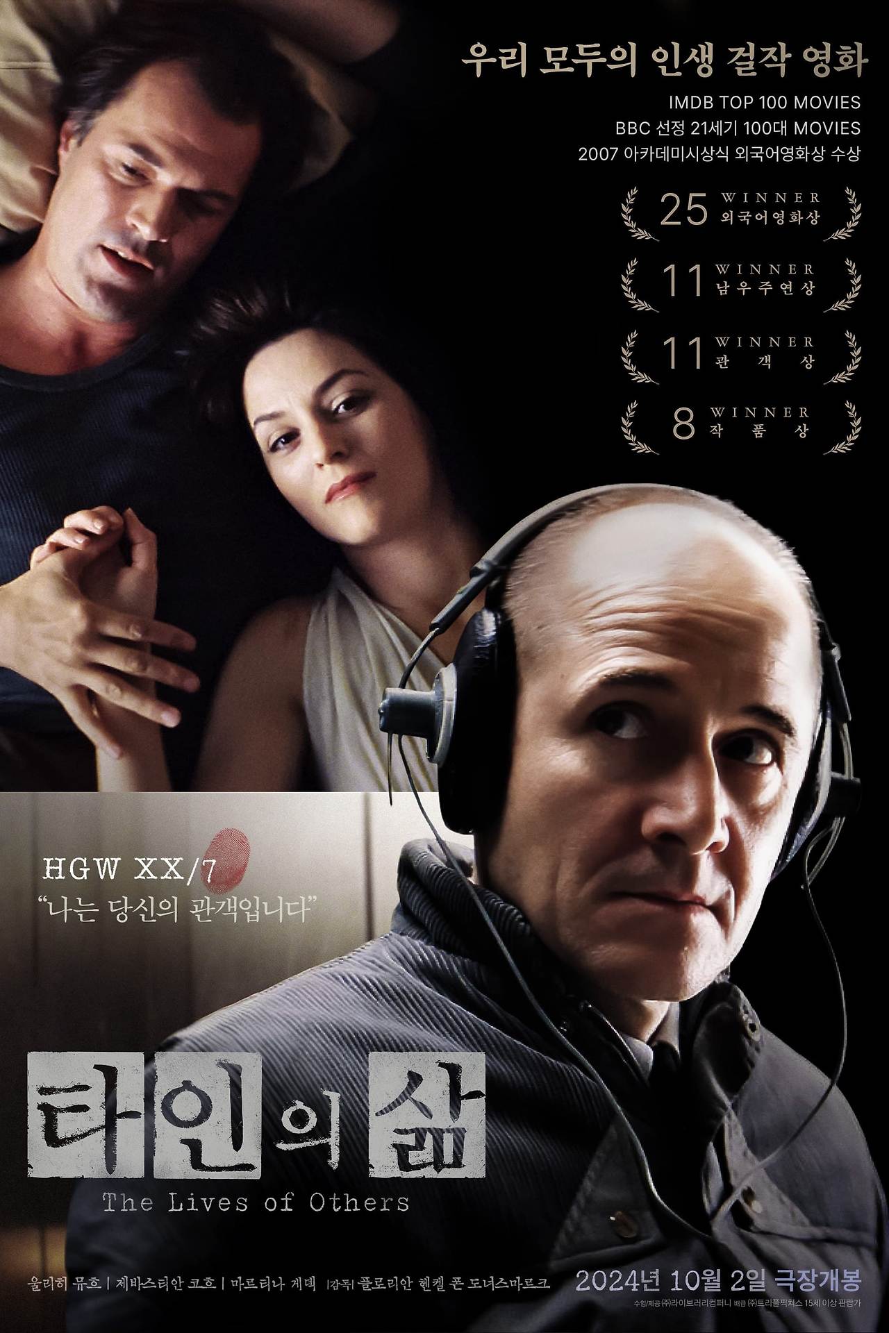 2007년 3월에 개봉한 독일 영화 <타인의 삶>(Das Leben der Anderen)이 올해 10월 2일 재개봉하면서 다시 주목을 받고 있습니다. 지난 주말에 봤는데요. 영화 중반이 넘어가면서 몰입도가 높아 2시간 넘는 상영시간이 길다고 느끼지 않았어요. 타인에 대한 연민으로 향하는 인간의 본성과 선한 의지는 어디에서 오는가에 대한 근본적인 질문을 던지는 이 영화는 단순히 정치적 스릴러에 그치지 않고, 인간 본성의 변화와 도덕적 딜레마를 그리며 관객들에게 깊은 울림을 주었습니다.