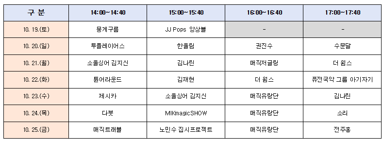 '구석구석 라이브 버스킹' 공연(총 26개 팀)