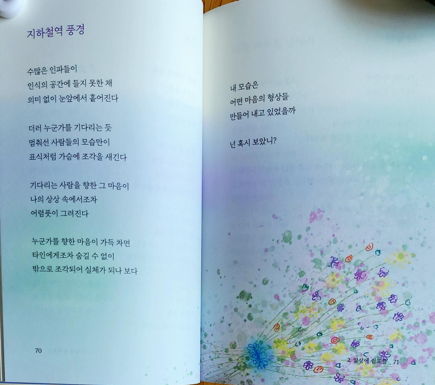 곱고 정갈한 시 100여 편을 담은 이 시집에는 자연과 삶을 노래하는 시가 가득하다. 저자가 직접 그린 파스텔 톤의 삽화가 시와 어우러져 정감을 자아낸다. 시인은 “이 시밥이 누군가의 영혼에 허기를 달래 주고, 그늘을 벗어날 힘을 주어 단 한 사람이라도 살맛나게 해 줄 수 있다면 감사한 일이다”라고 말한다.
