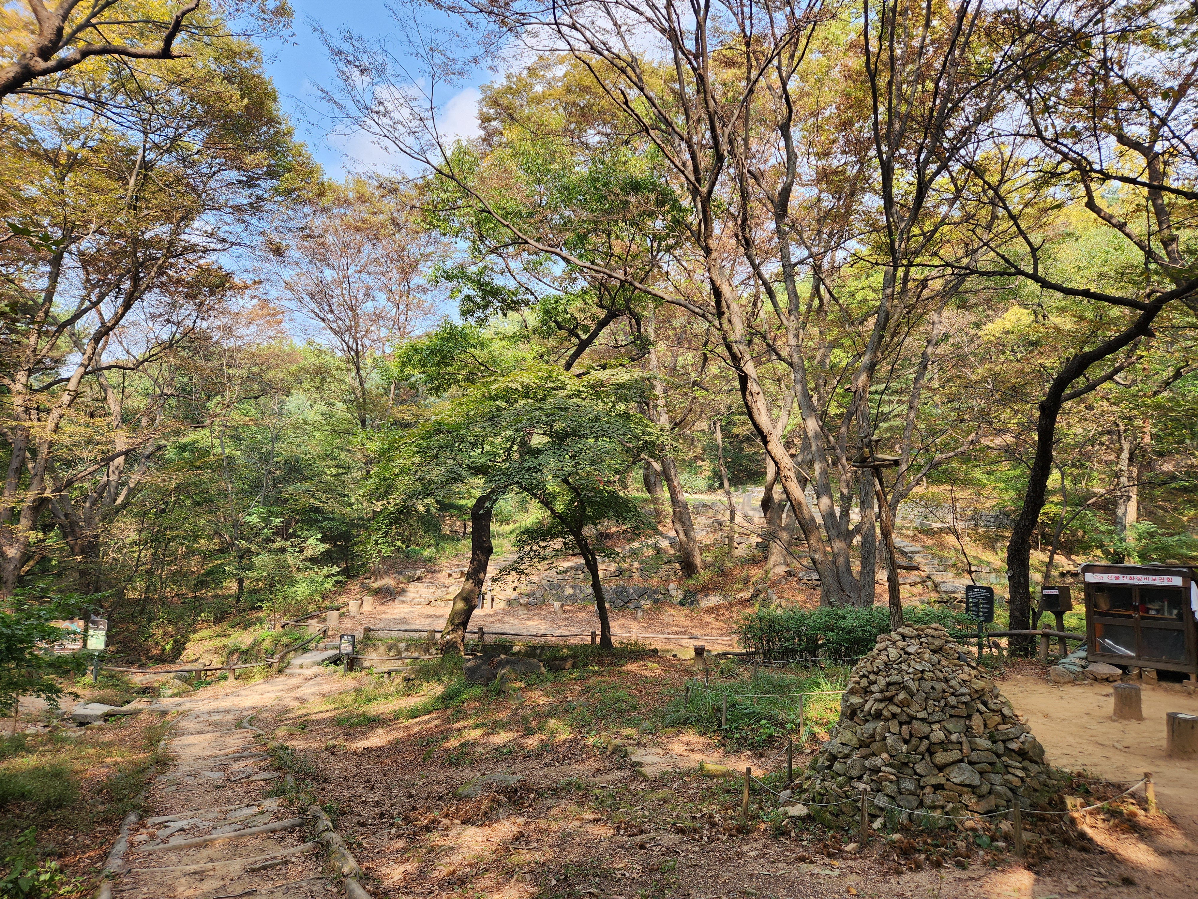 📚 지난 주말, 구름 한 점 없는 쾌청한 가을 날씨였죠. 춥지도 덥지도 않아 나들이하기에 딱 좋은 날, 책 읽기도 좋고 걷기도 좋은 날이었는데요. 평소에 온라인 줌으로 독서모임을 가져오다가 모처럼 바깥 모임을 하기로 한 날이어서 8명이 '윤동주 문학관'이 있는 종로구 부암동에서 만났습니다. 그 동네에 있는 분위기 좋은 퓨전 한정식 '소소한 풍경' 에서 점심을 먹고, 백사실 계곡까지 20여 분 걸어서 이동했는데요. 숲속에 도착해 자리를 잡고 둘러 앉아 미리 준비해 온 시를 낭송하는 시간을 가졌습니다.